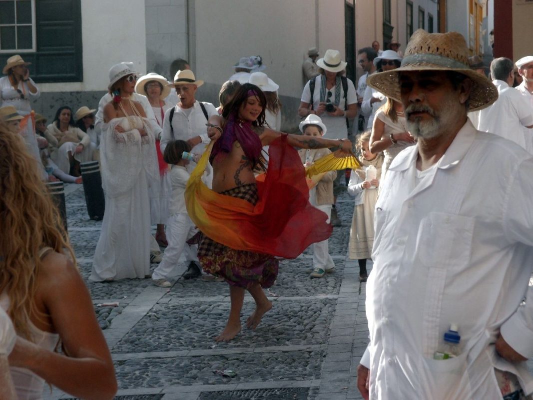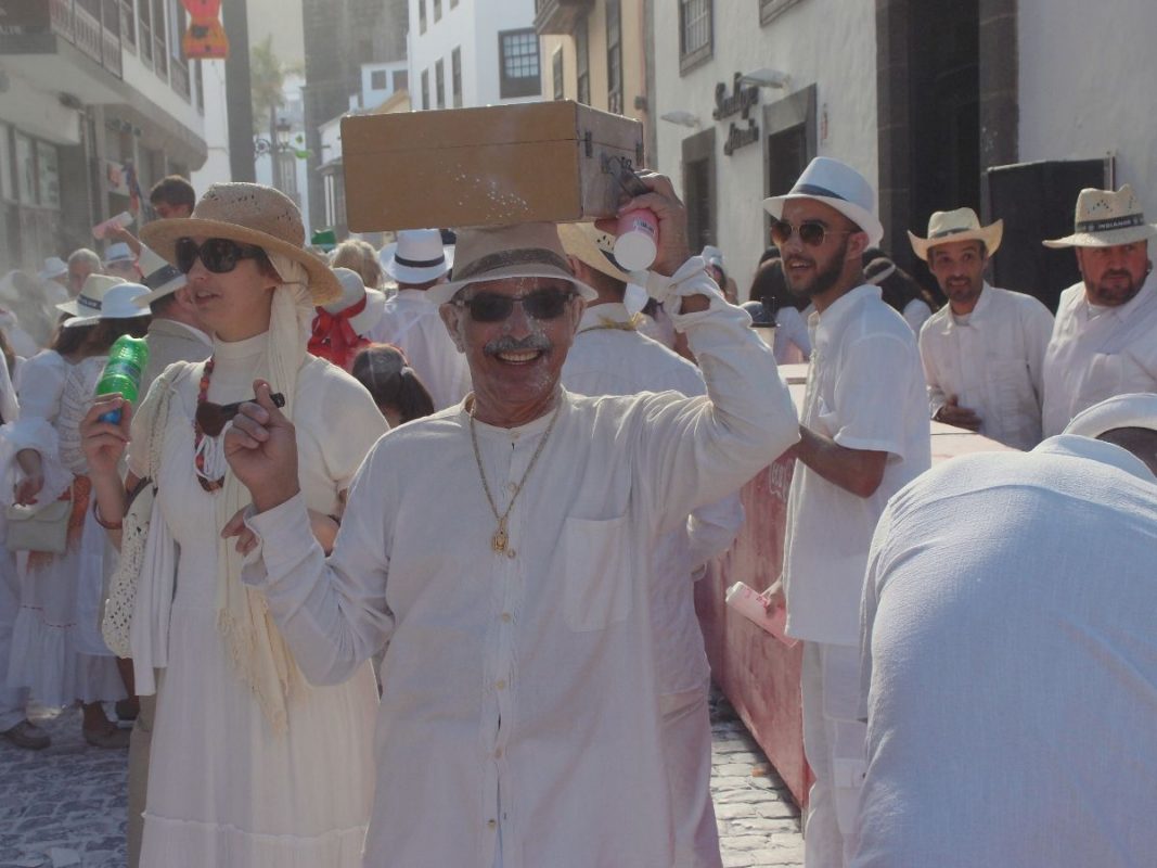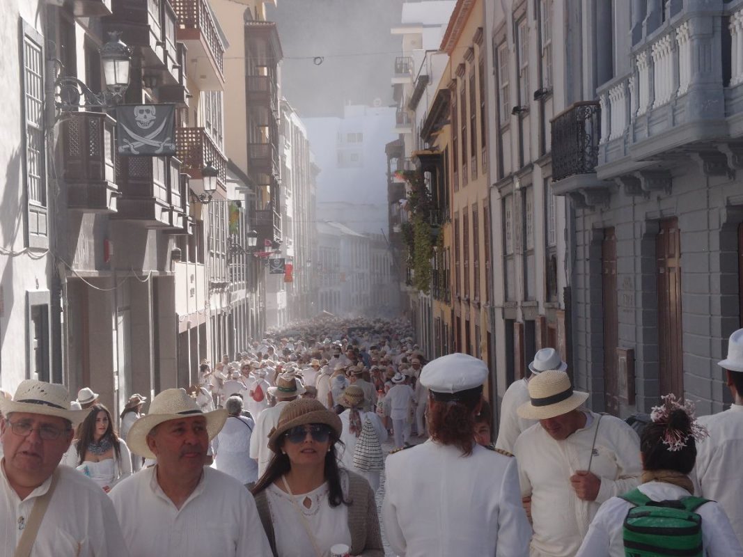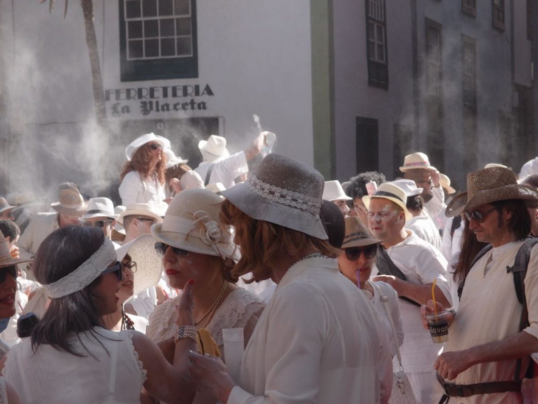 Santa Cruz de La Palma pulsiert im kubanischen Danzon und Son-Rythmus. Der Carnaval hat seinen Höhepunkt gefunden. Alles in Weiß und dazu tonnenweise Polvo (Talkum). Fröhliche, ausgelassene und hüftschwingende „Indianos“ soweit das Auge reicht. Die Hauptstadt bebt und die Trommeln dröhnen heftig aus allen Gassen. Der parfümierte Polvoduft ist allgegenwärtig.