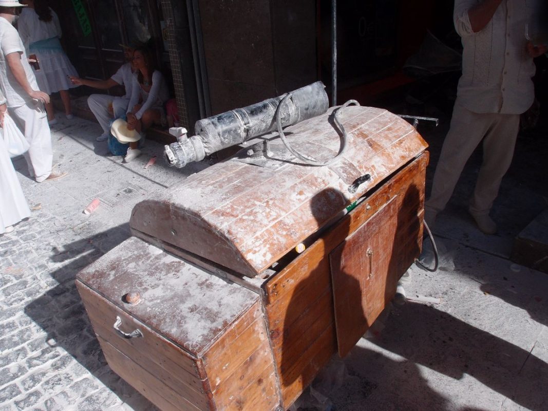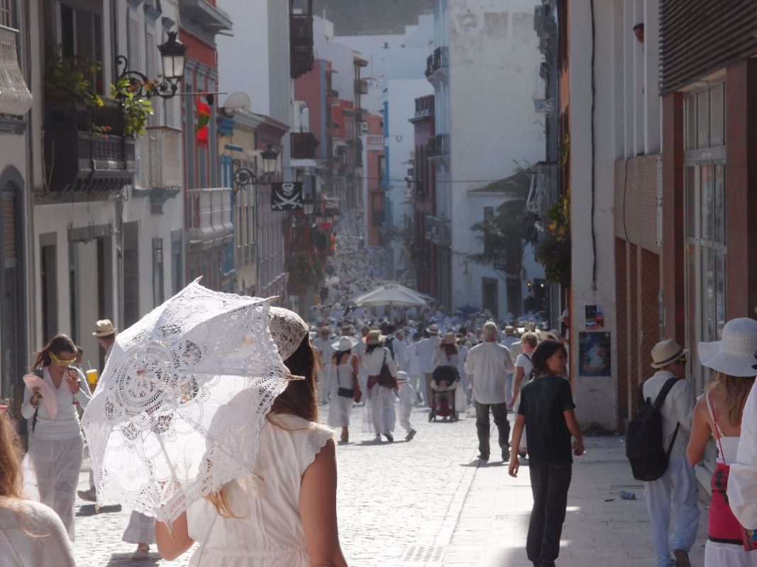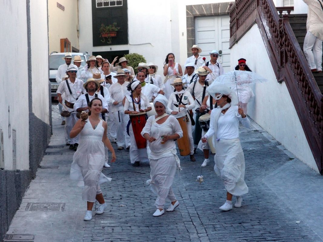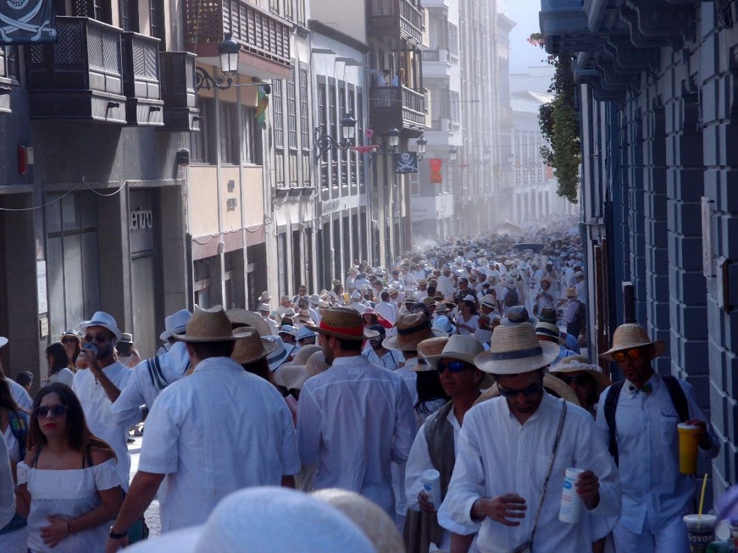 Santa Cruz de La Palma pulsiert im kubanischen Danzon und Son-Rythmus. Der Carnaval hat seinen Höhepunkt gefunden. Alles in Weiß und dazu tonnenweise Polvo (Talkum). Fröhliche, ausgelassene und hüftschwingende „Indianos“ soweit das Auge reicht. Die Hauptstadt bebt und die Trommeln dröhnen heftig aus allen Gassen. Der parfümierte Polvoduft ist allgegenwärtig.