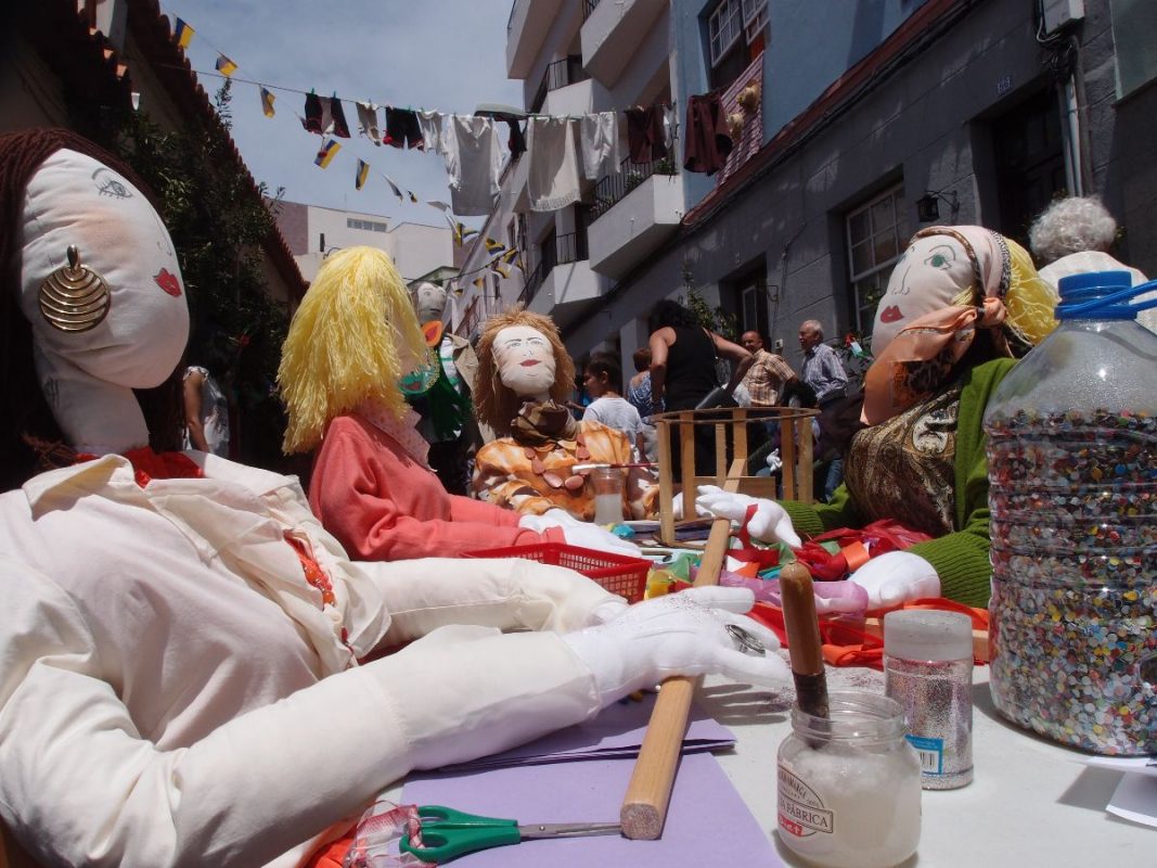 In Santa Cruz de La Palma werden die Mayos mit dem Dia de la Cruz gekoppelt. Ganze Strassenzüge werden mit grotesk lebensgroßen Puppen in allen Lebenslagen nachgestellt.